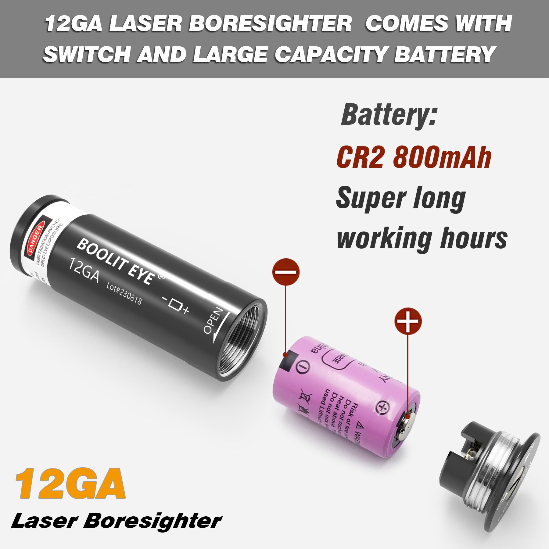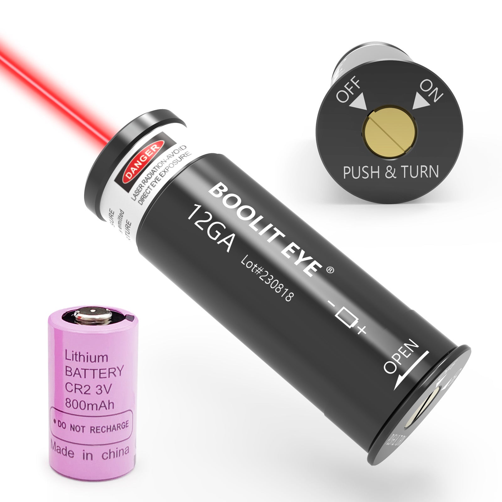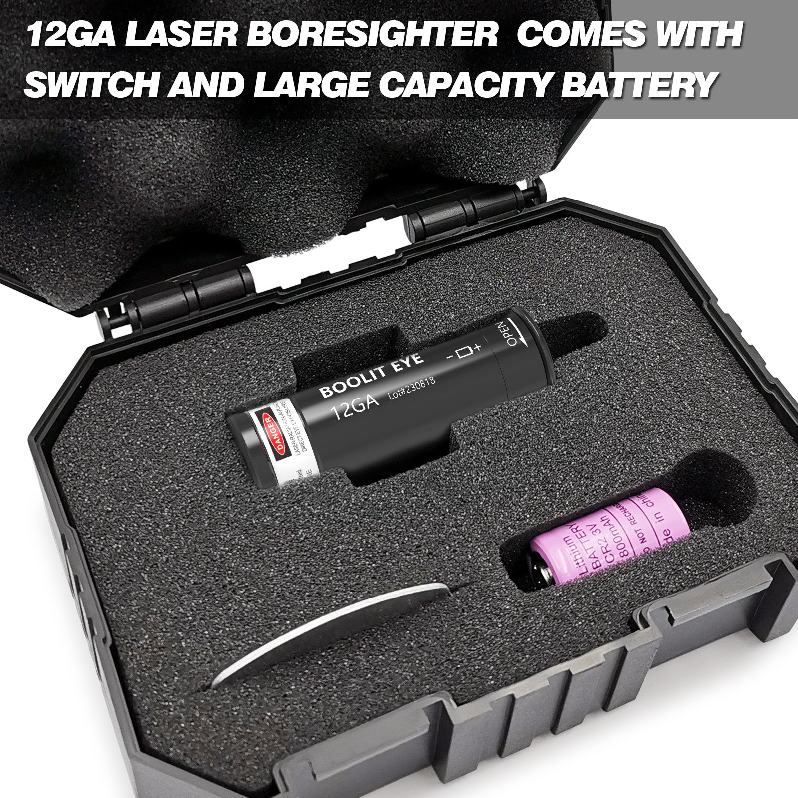 - Specific: This is a great laser bore sighter for the 12GA firearm, Comes with switch and you can turn off when not in use.(Caliber specific. Easy to sit perfectly in the chamber). The laser dot is very clear and brighter, so it is works well and sighting far away.