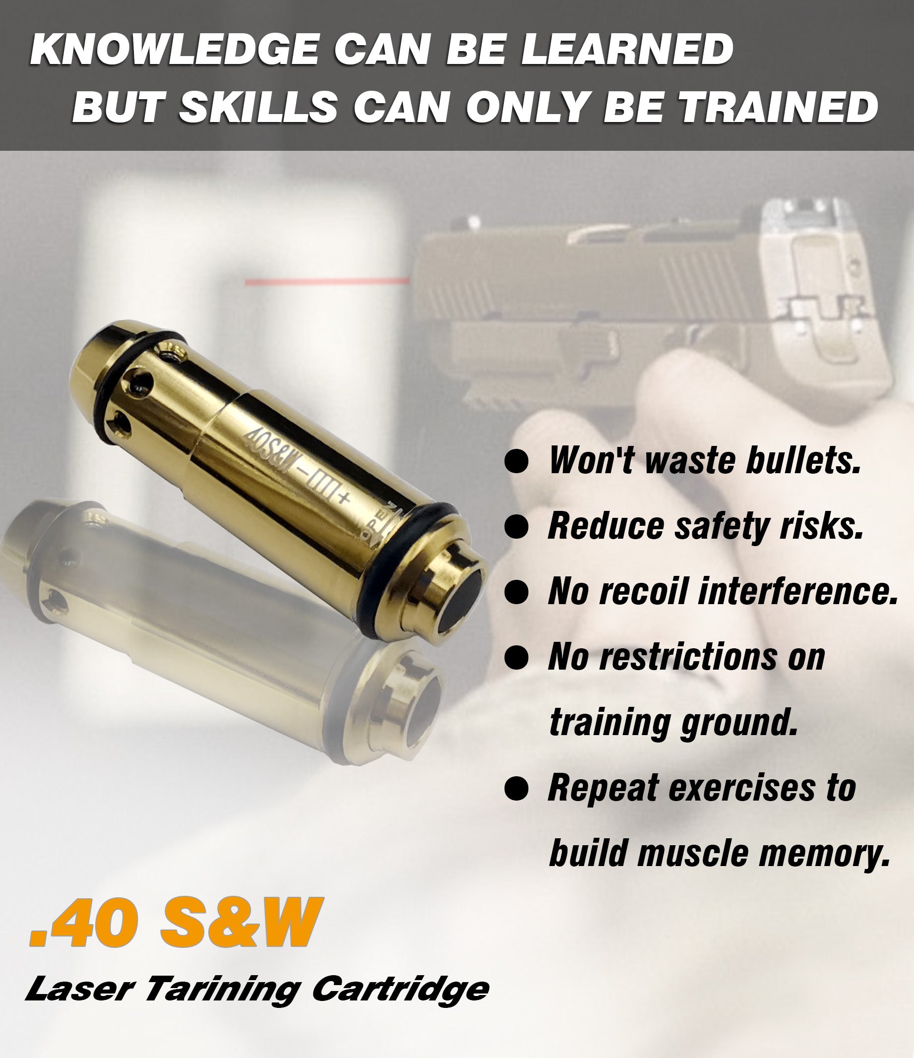 - Upgraded Switch: 3rd generation laser training cartridge will work for all .40 S&W firearms.The greatest benefit of dry fire laser Improving your shooting skills without real cartridge wasting. You can train and do dry fire practice safely.