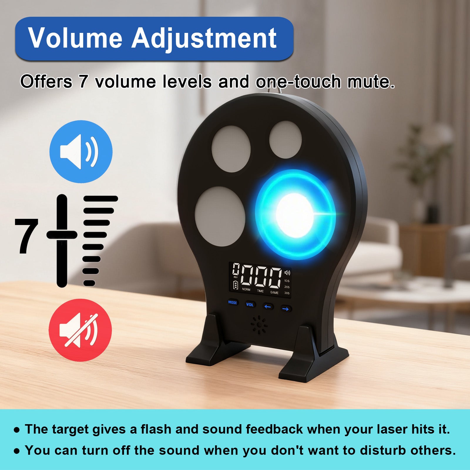 - Fully Adjustable Audio & Silent Operation---Customize your training atmosphere with 7 volume levels or enable mute instantly. Hold the VOL button to fine-tune sound settings effortlessly.