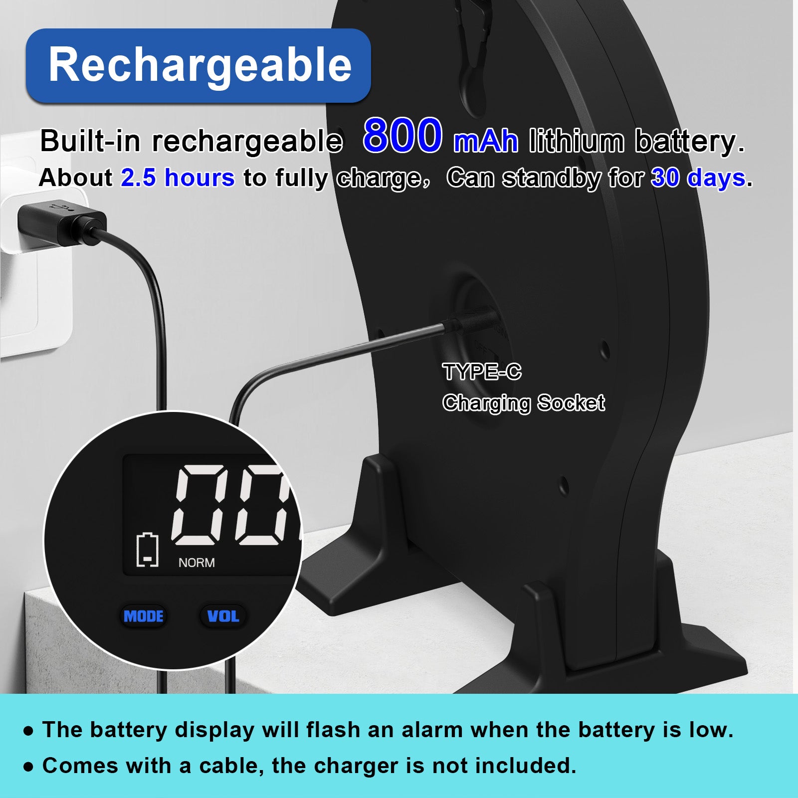 - Extended Battery & Auto Power Management---A high-efficiency lithium polymer battery supports up to one month on standby. The target auto-shuts down after 10 idle minutes and includes low-battery alerts with Type-C charging.