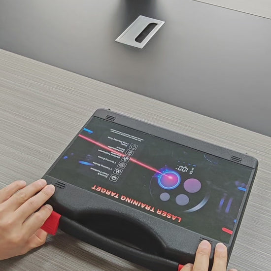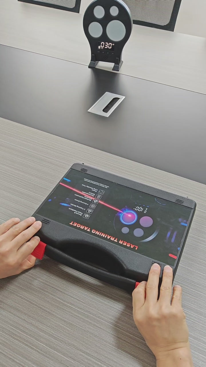 - Easy Setup, Carry & Broad Compatibility---Use with the included stand or wall mount. The premium carrying case offers protection and portability. Comes with 9mm dry fire laser, Max. Output Power: ≤ 4.9mW, Laser Class IIIa, red laser training cartridges (650–680nm).