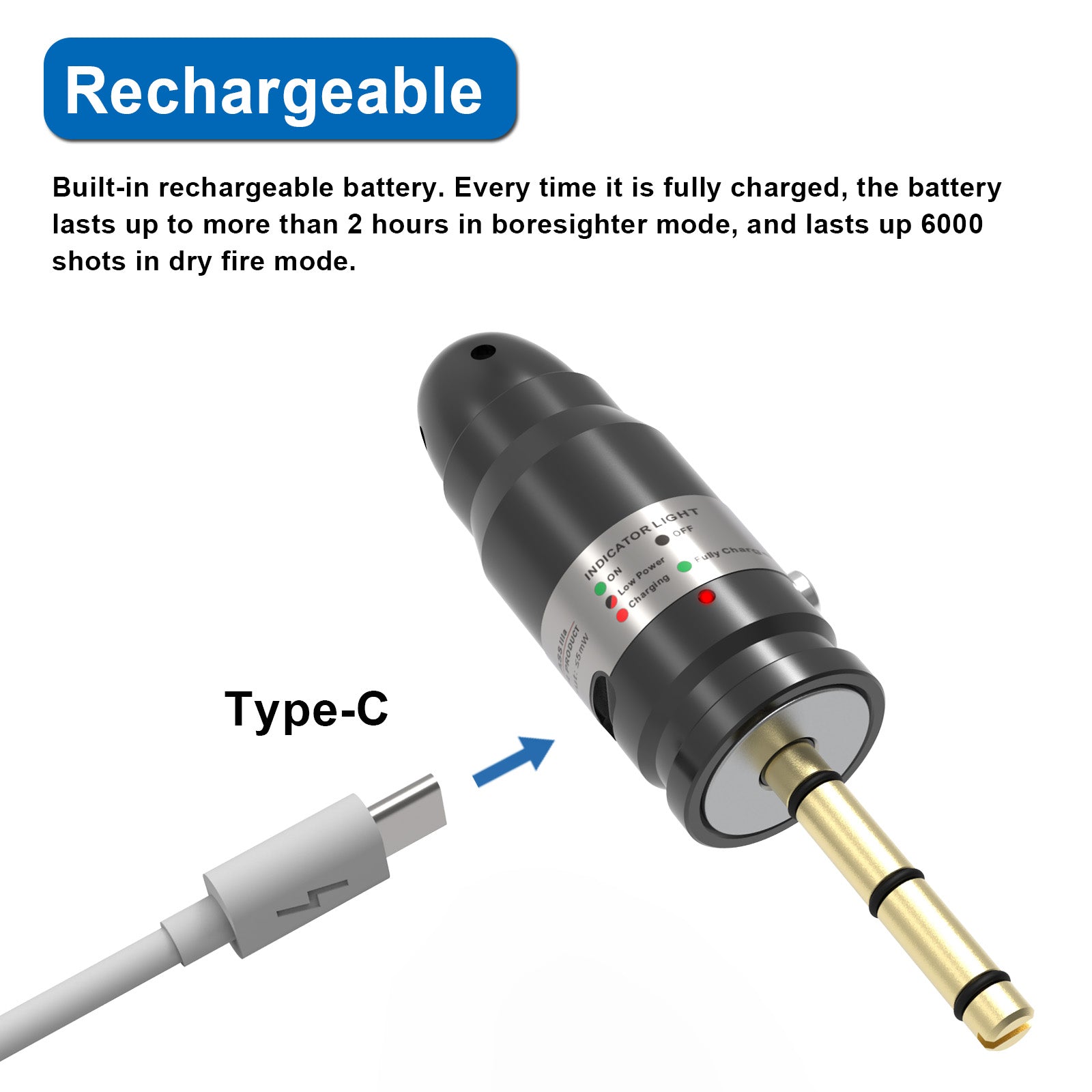 - 【Long Lasting】: Built-in rechargeable battery. Every time it is fully charged, the battery lasts up to more than 2 hours in boresighter mode, and lasts up 6000 shots in dry fire mode.