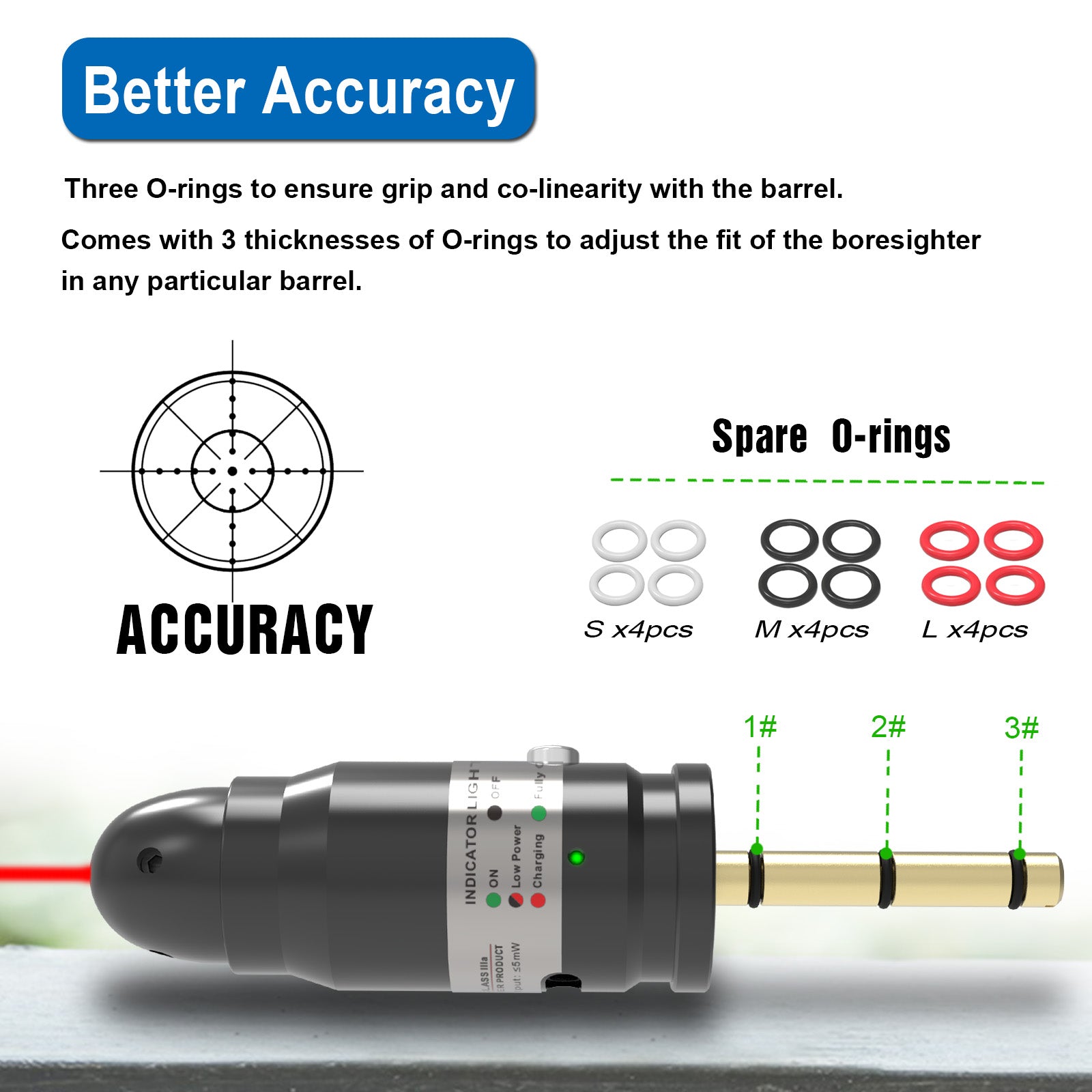 - 【Working Status】: Red laser Class IIIa (Less than 5mW), Wavelength range 630 - 680nm. In bore sight mode, the laser will keep laser lit like a normal chamber boresighter. In dry fire training mode, a shot will be detected and laser flashing will be triggered.