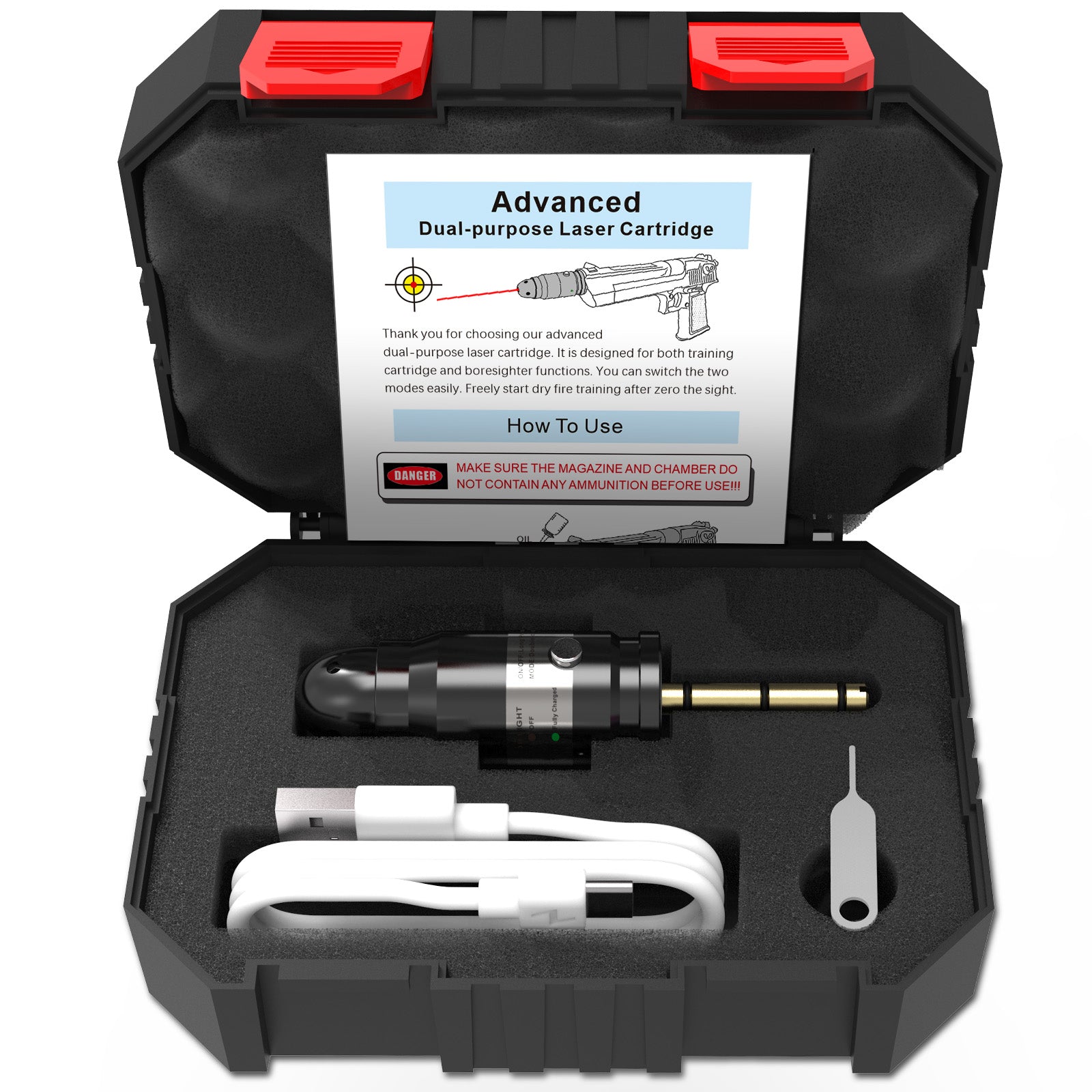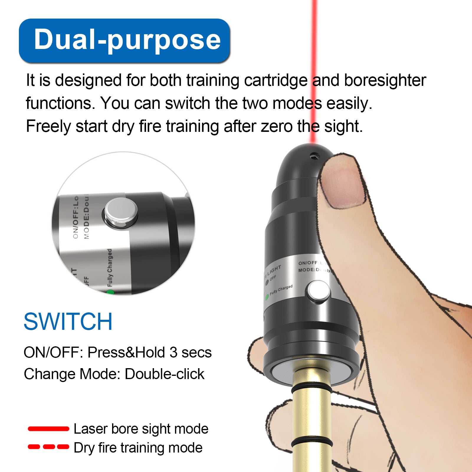 - 【Dual-function】: It is designed for both training cartridge and boresighter purpose. You will switch between the two modes easily. And start dry fire training after setting the sight.(Mainly suit to steel barrels without mu.zzle devices)